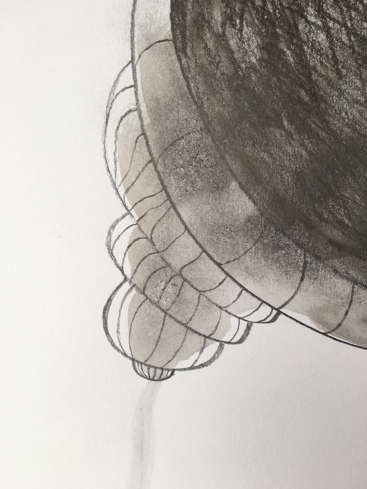 I trail behind, head down for the small shells,