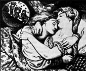 NOTE: for info on Dante Gabriel Rossetti‘s illustrations put, ‘and Lizzie veiled her blushes ‘ into any search engine… the pics caused quite a storm. The tradition of Courtly love and benign friendship was where she took her influence, in this case I would ignore Freudian analyses and go with Rossetti – her innocence is apparent- though the subconscious thread in creation always provides meat for academic thought]